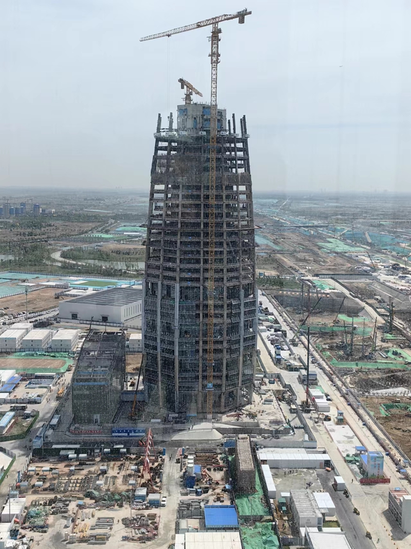 站在楼顶远眺,四周塔吊林立,地上之城、地下之城、“云”上之城都是一派繁忙景象。