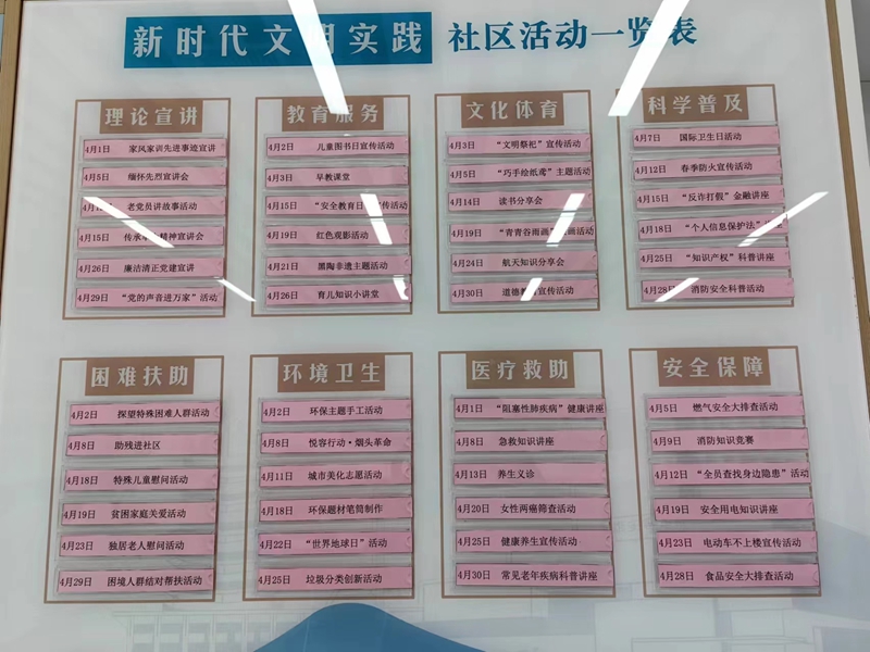 图为雄安新区容东片区南文营社区展示的社区活动。