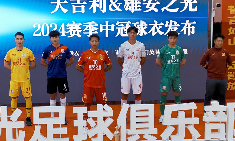 雄安之光球员和教练展示2024赛季球衣。王伟宏 摄