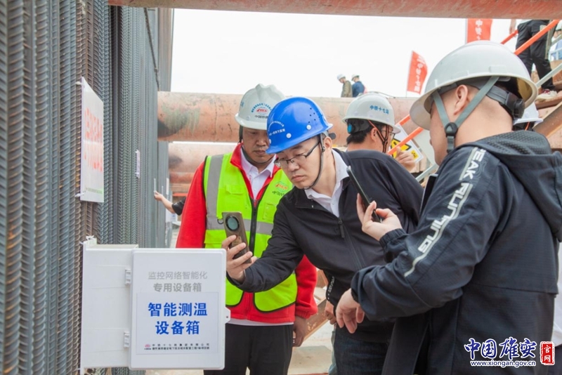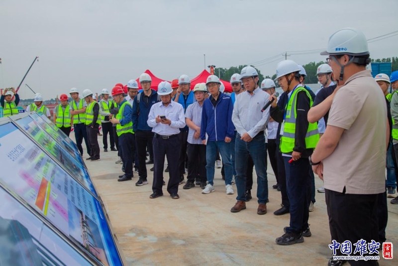 中国雄安官网5月29日电 近日,雄安新区桥梁承台大体积混凝土温控施工样板观摩活动在雄忻高铁雄安新区地下段相关配套工程1标段白沟引河大桥举办。活动由雄安新区建设工程质量安全检测服务中心(以下简称“新区质安中心”)、雄安集团雄商公司、国铁建管公司雄安指挥部联合主办,中铁十七局集团有限公司、西安铁一院工程咨询管理有限公司雄忻高铁雄安新区地下段相关配套工程1标段项目部承办,旨在展示承台大体积混凝土施工温控技术,推广标准化精细化的施工工艺,加强新区参建单位技术交流,提高桥梁工程质量。