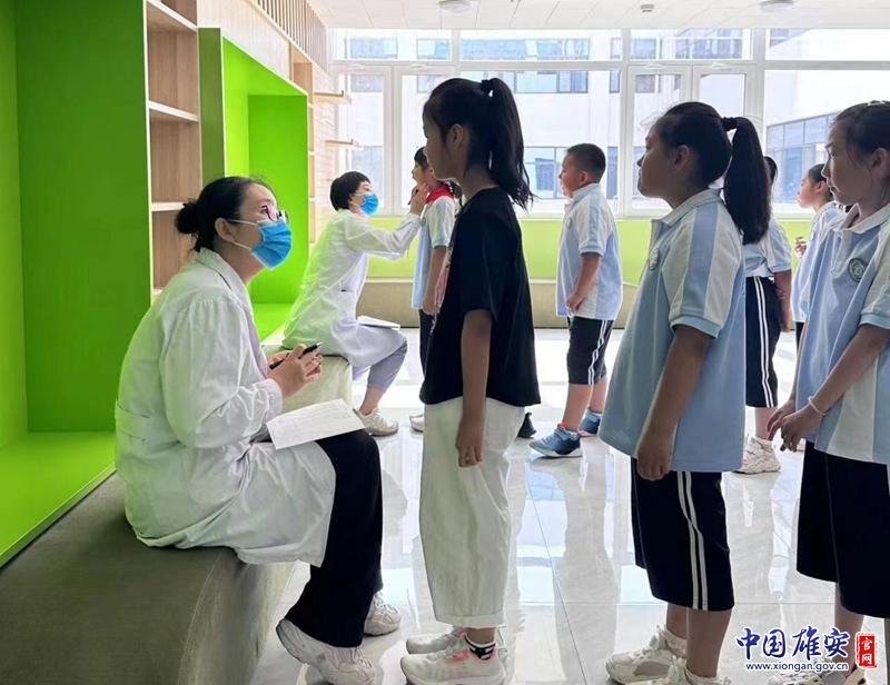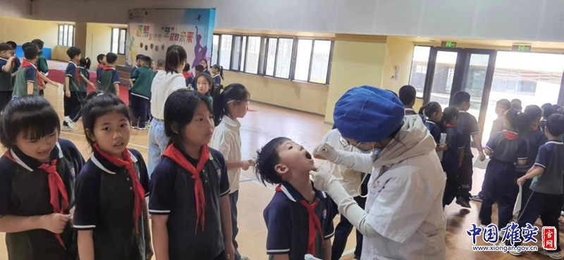 2024年适龄儿童窝沟封闭项目走进校园,医护人员为学生进行口腔检查。雄安新区公共服务局供图