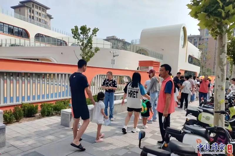 “小螺号”志愿者开展护学行动,为爱站岗。中国雄安官网发