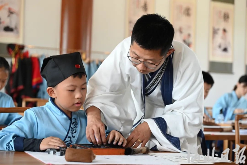 6月8日,2024年“文化和自然遗产日”河北省非遗宣传展示活动暨河北非遗购物节——端午·雄安非遗大会启动。图为活动现场,小朋友体验活字印刷技术。河北日报记者曹铮 摄