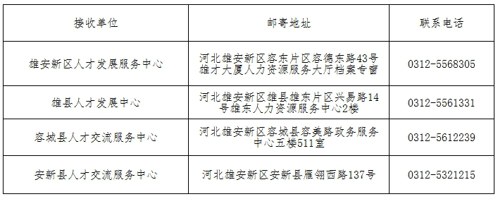 三、雄安新区转递接收毕业生档案的单位名称、地址及联系方式: