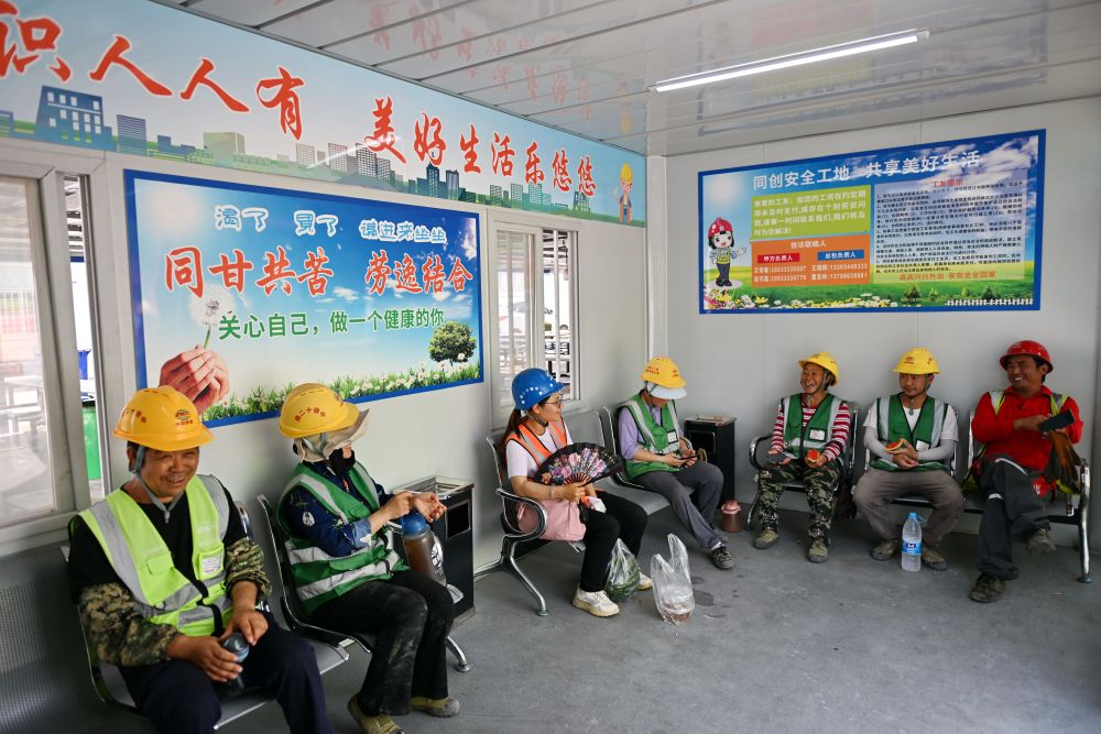 6月13日,中铁十二局工人在雄安新区大河片区安置房及配套设施项目一处“工人驿站”内休息。新华社记者牟宇 摄