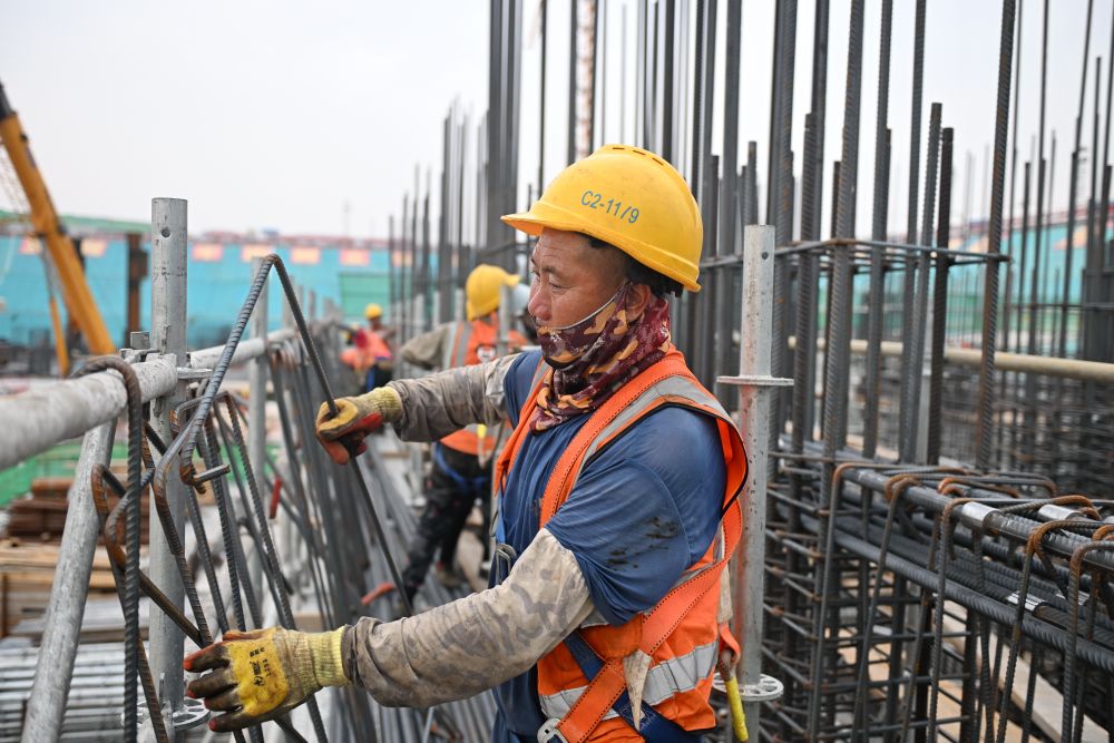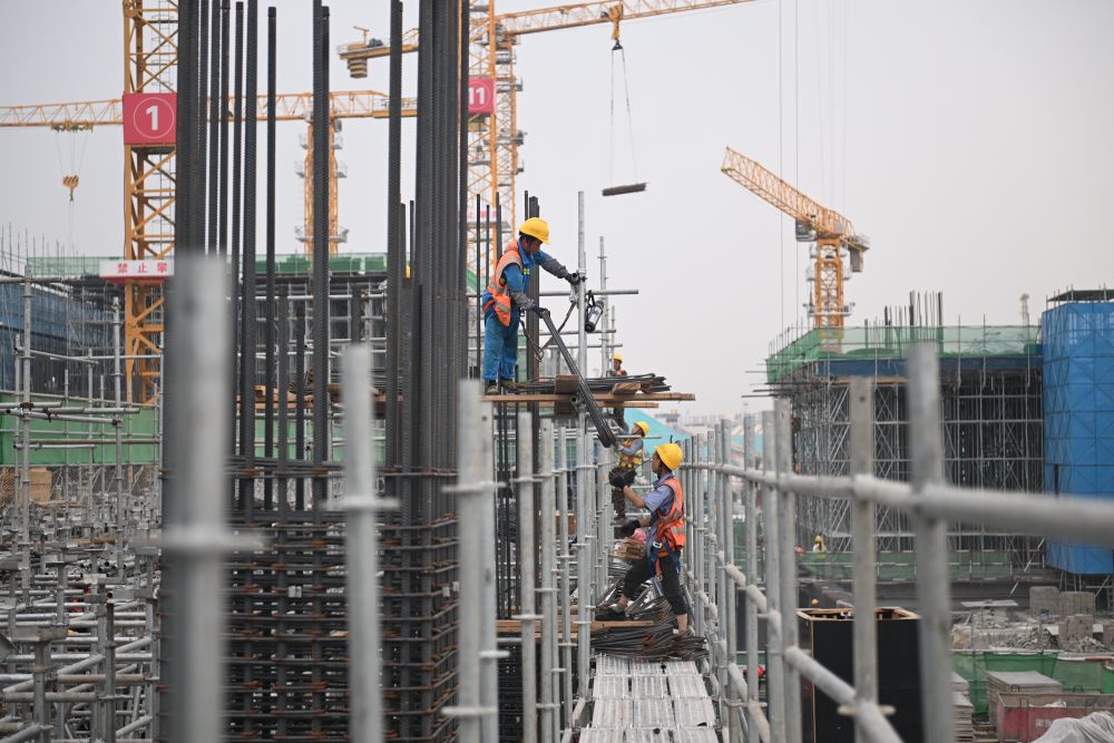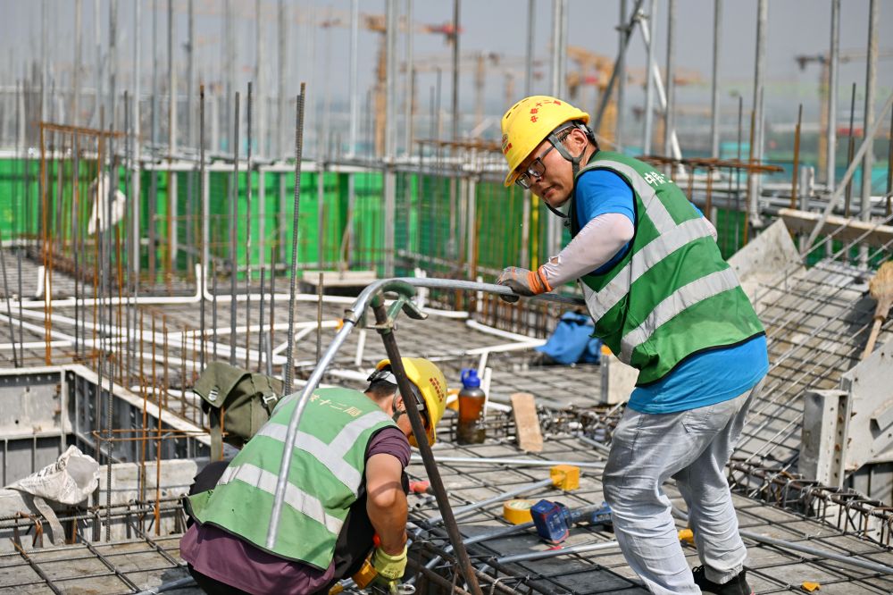 6月13日,在雄安新区启动区,中国建筑股份有限公司工人在雄忻高铁雄安地下段及相关配套工程四标段建设现场作业。新华社记者牟宇 摄