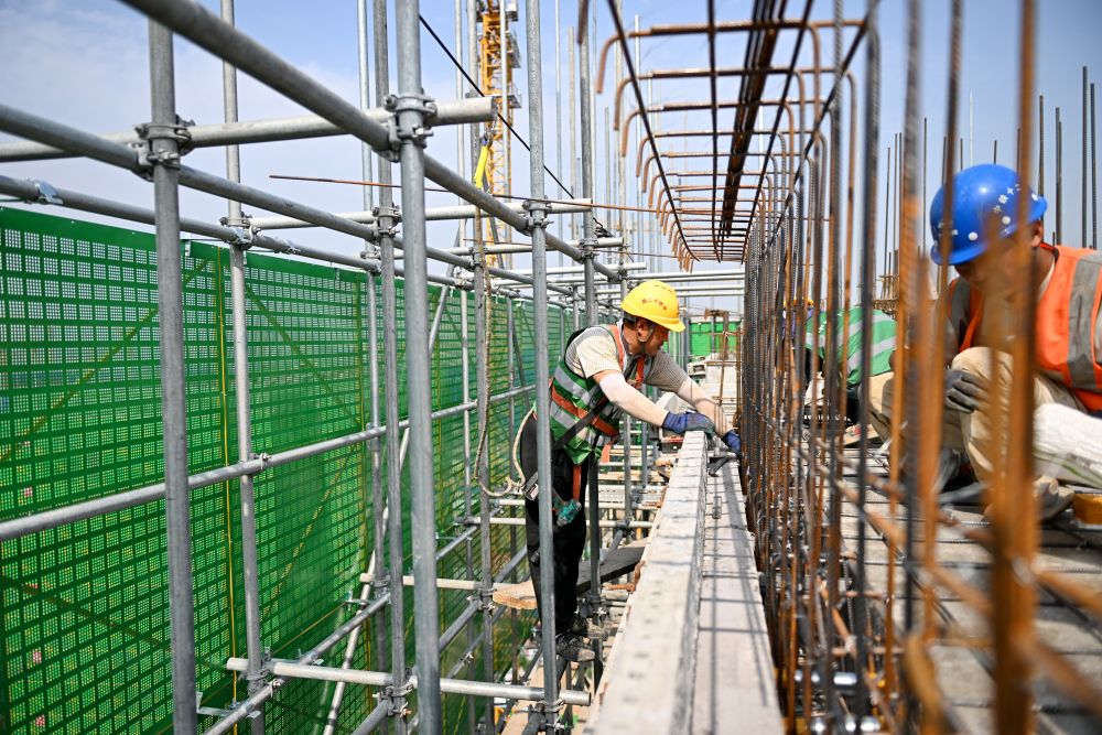 6月13日,中铁十二局工人在雄安新区大河片区安置房及配套设施项目建设现场施工。新华社记者牟宇 摄
