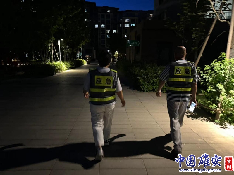 夜间志愿者正在社区内巡逻。中国雄安官网发