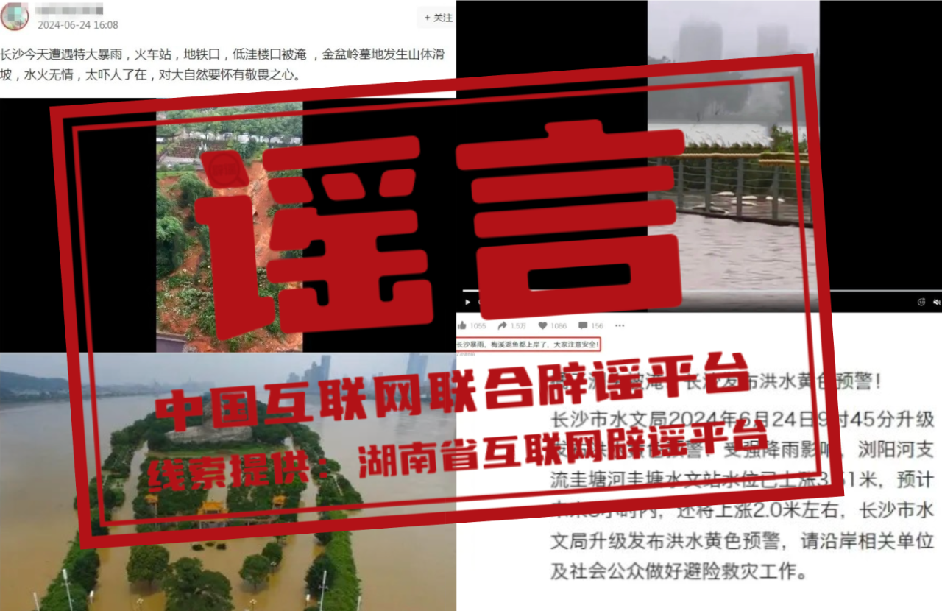 谣 言 长沙暴雨致橘子洲头被淹?金盆岭烈士陵园坍塌?梅溪湖的鱼都上岸了?