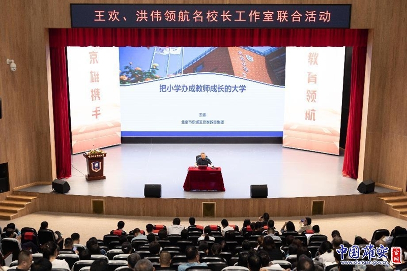 洪伟作《把小学办成教师成长的大学—史家小学教师队伍建设的思考与实践》的主旨报告。中国雄安官网毛鹤然 摄