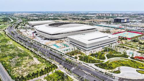 6月16日,无人机航拍的雄安新区海岳大街。一条海岳大街串联“古今”,雄安体育中心、南阳遗址都在这条大街沿线。河北日报记者耿辉 摄