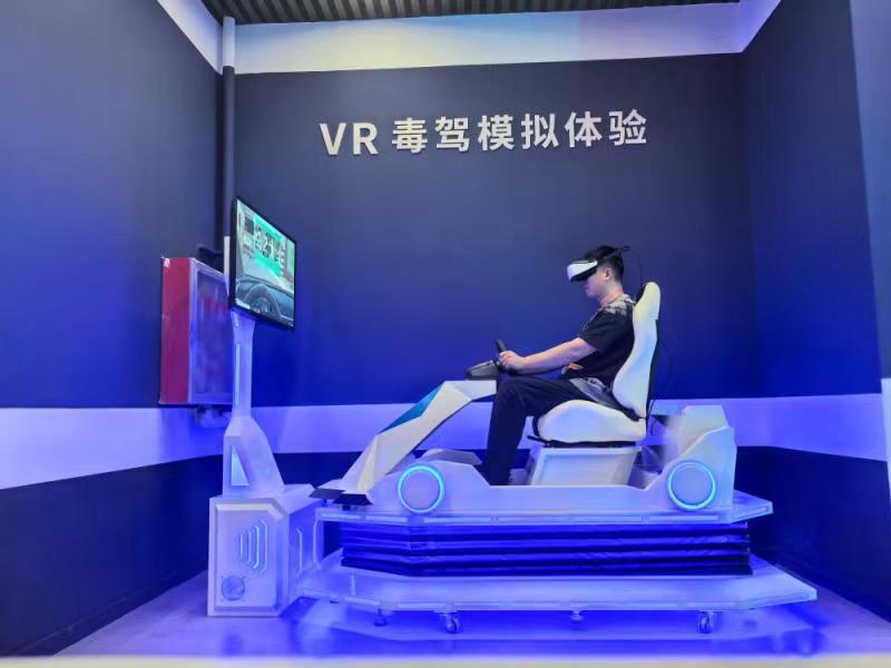 在工作人员的引导下,记者体验了教育基地的VR毒驾模拟体验仪和VR毒品认知科普仪等设备。坐进展馆毒驾互动体验模型,记者以“毒驶者”的视角模拟体验了毒驾过程中视线模糊、大脑不受控制地晕眩、旋转等状态,切身感受了毒驾的危害。