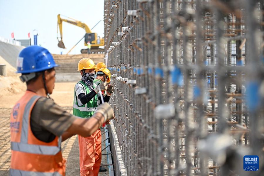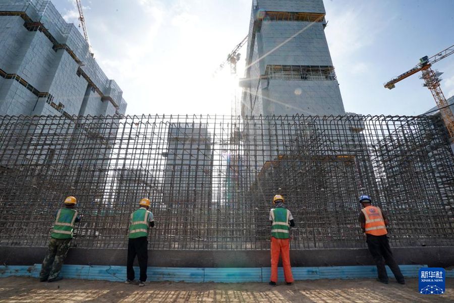 近日,在雄安新区大河片区安置区市政基础设施工程建设现场,建设者冒着酷暑坚守一线,确保工程建设有序推进。为保障建设者安全,施工单位发放绿豆汤、西瓜等防暑物资,同时部署错峰作业方案,避开高温时段进行户外施工。
