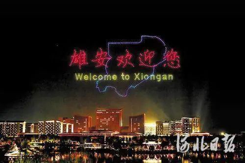 6月26日晚,雄安之夜活动中的无人机表演。河北日报记者田明 摄