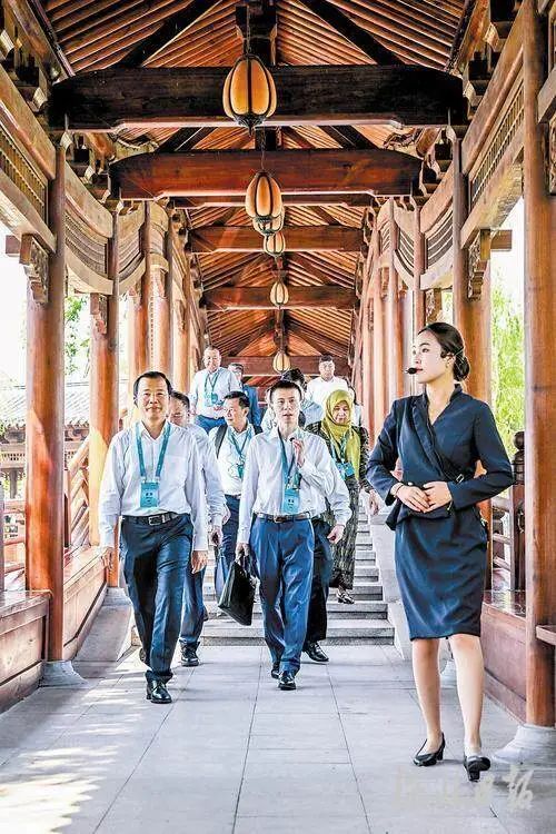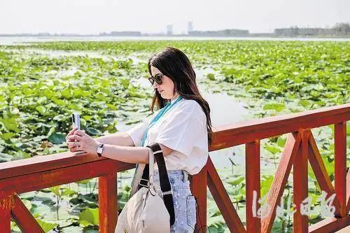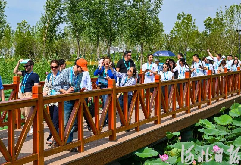 6月26日,外宾在悦容公园感受雄安自然和文化之美。河北日报记者田明 摄