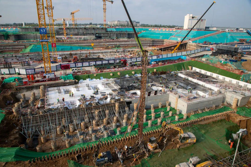 在智能建造方面,国贸中心将BIM与全景计划进行深度融合,形成BIM生产应用计划。基于深化模型至少在施工前一个月完成虚拟建造,将传统二维施工方案转化为三维方案模拟,提前发现方案错漏碰缺。如基坑开挖模拟,创新性地改变传统二维图纸反算方式,直观展示出基坑标高及开挖线,提前进行现场施工交底,避免开挖错误。