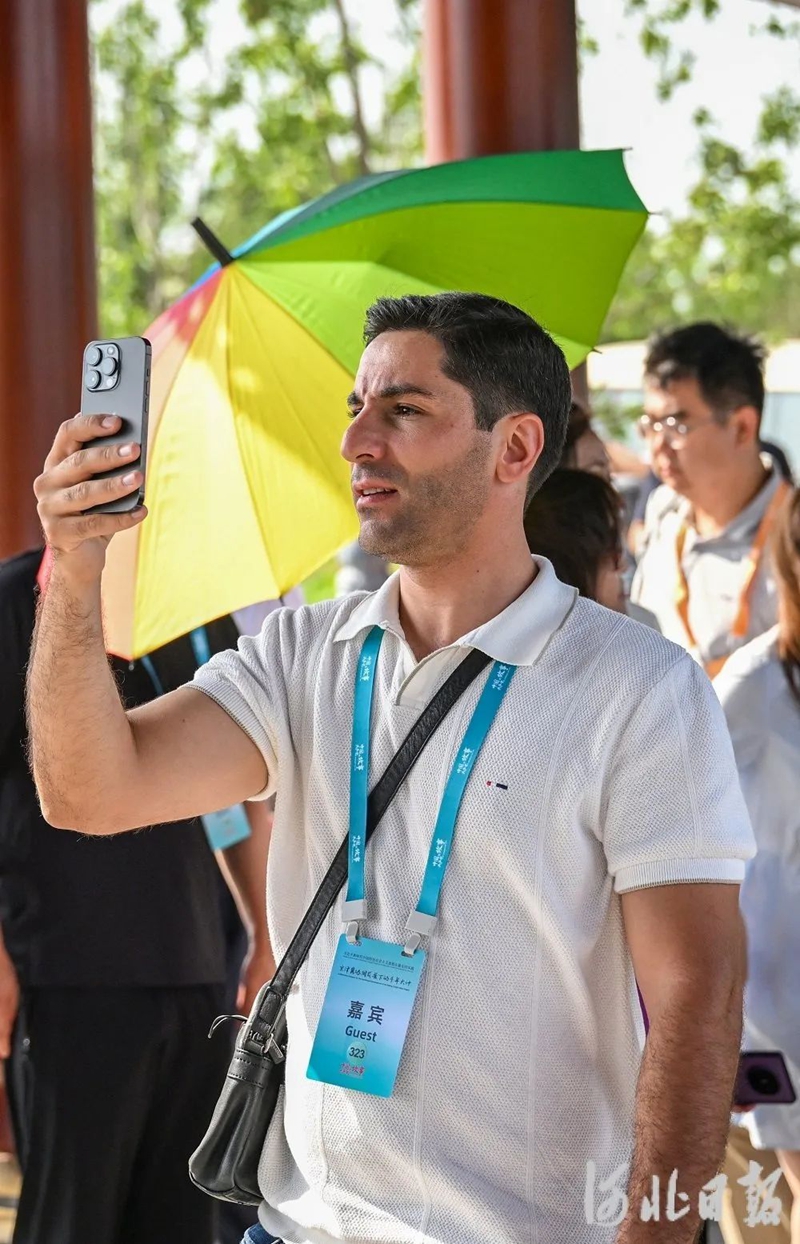 跟随工作人员的脚步,外宾们领略了园中峰、岭、丘、谷、岛、滩、坡、台、壑九种丰富地貌,登上了高高耸立的安和塔。放眼望去,近处的郊野公园、金湖公园,远处的白洋淀尽收眼底,一幅蓝绿交织的优美画卷铺展开来。