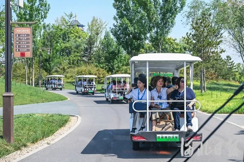 6月26日,外宾在悦容公园了解雄安新区绿化建设情况。河北日报记者田明 摄