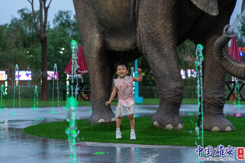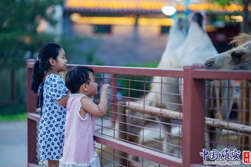 小朋友在雄安辛玛森林动物乐园夜场游玩。中国雄安官网高盟 摄
