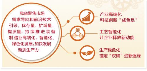 今年以来,我省聚焦市场需求导向和前沿技术引领,优存量、扩增量、提质量,持续推进装备制造业高端化、智能化、绿色化发展,加快发展新质生产力。