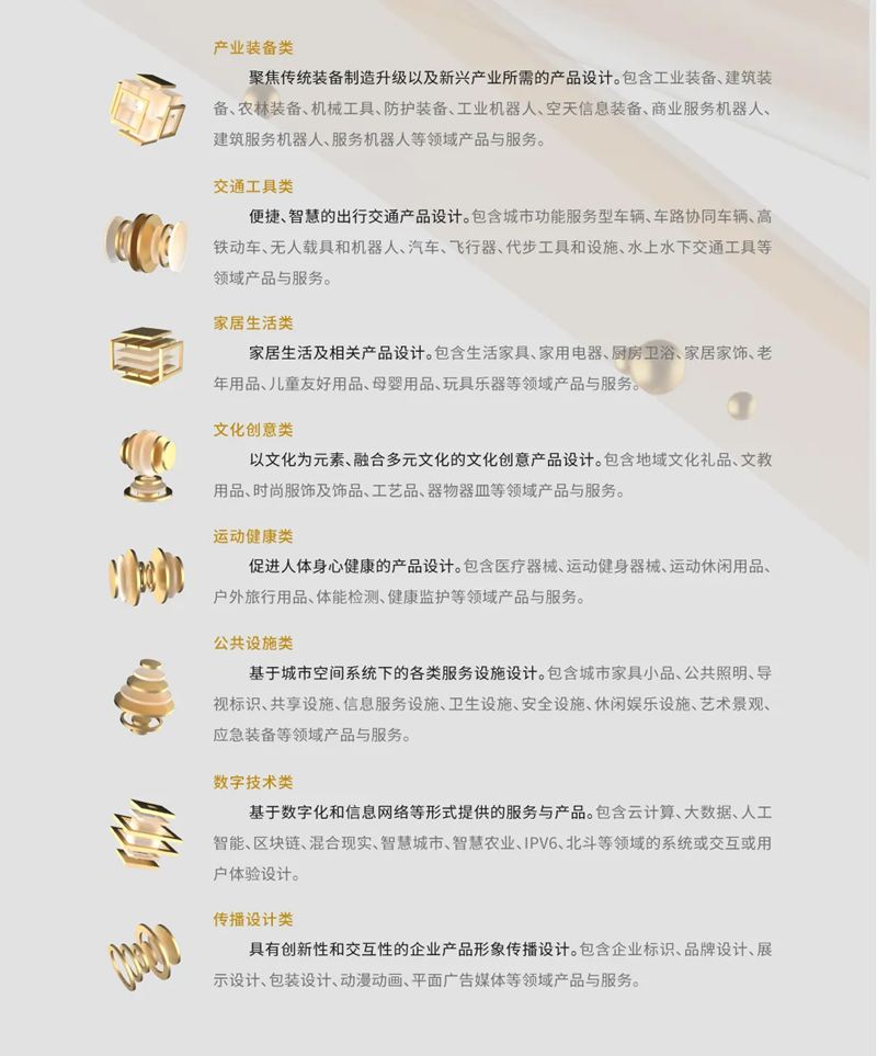 第五届金芦苇奖参赛类别涵盖产业装备、交通工具、家居生活、文化创意、运动健康、公共设施、数字技术、传播设计等8个领域。奖项设置包括至尊奖、金奖、未来之星奖和优秀设计奖等多个等级,其中至尊奖的奖金高达100万元人民币。全球任何国家和地区的企事业单位、设计机构、院校、设计团队、科研机构及个人均可在北京时间2024年7月8日24时报名截止前,通过金芦苇奖官网(www.goldreedaward.com)提交作品参赛。第五届金芦苇奖将于7月10日起开展初评工作,届时评审结果将在金芦苇奖官方公众号公示。
