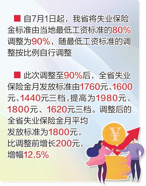 近日,省人社厅、省财政厅印发《关于调整失业保险金标准的通知》,自7月1日起,河北省将失业保险金标准由当地最低工资标准的80%调整为90%,随最低工资标准的调整按比例自行调整。