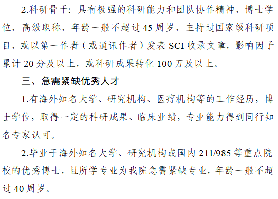 5.符合招聘岗位要求的其他条件(详见附件2《雄安宣武医院高层次人才引进标准》);