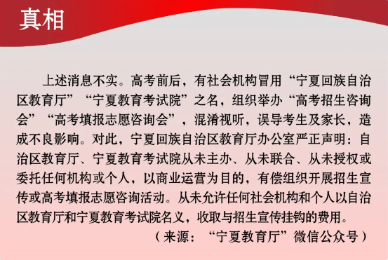 谣言01:宁夏教育厅举办高考招生及志愿填报有偿咨询活动?