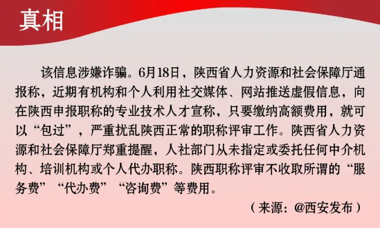 谣言02:只要缴纳高额费用,陕西职称评审“包过”?