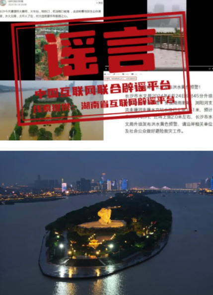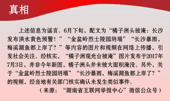 谣言03:长沙暴雨致橘子洲头被淹?金盆岭烈士陵园坍塌?
