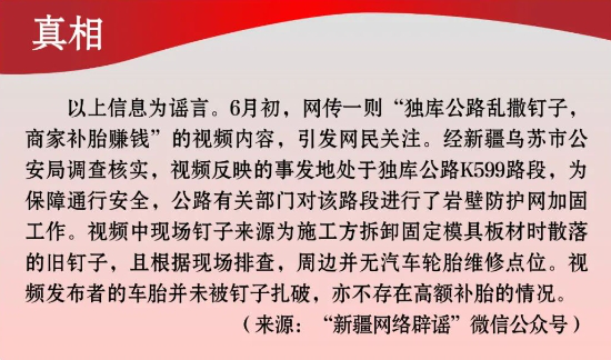 谣言05:商家为赚补胎钱在独库公路撒钉子?