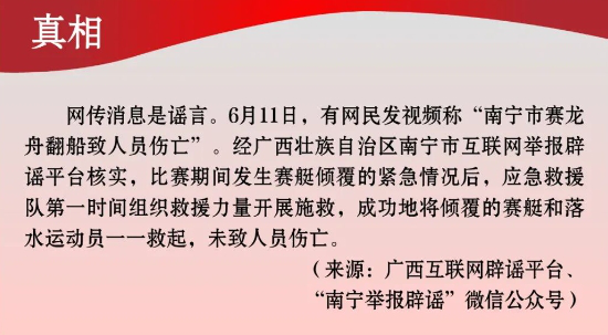 谣言06:广西南宁市赛龙舟翻船致人员伤亡?