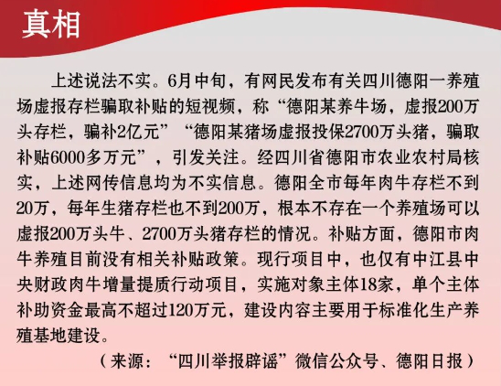 谣言08:四川德阳一养殖场虚报存栏骗补2亿元?