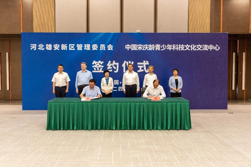 7月9日,中国宋庆龄青少年科技文化交流中心与雄安新区管委会在雄安会展中心举行战略合作协议签约仪式。中国宋庆龄基金会党组书记、副主席沈蓓莉,雄安新区党工委副书记、管委会副主任李涛出席活动。