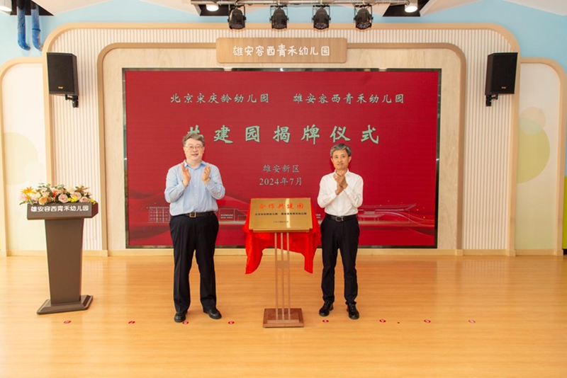 活动当天,沈蓓莉率队在雄安新区开展调研。调研组到雄安容西青禾幼儿园参加北京宋庆龄幼儿园与雄安容西青禾幼儿园共建园揭牌活动,并调研儿童友好校园建设情况。中国宋庆龄青少年科技文化交流中心主任郭新保、雄安新区公共服务局局长高立春为共建园揭牌。双方园所将充分发挥自身优势,在教师交流、科学保教、活动研发等多方面开展共建合作。