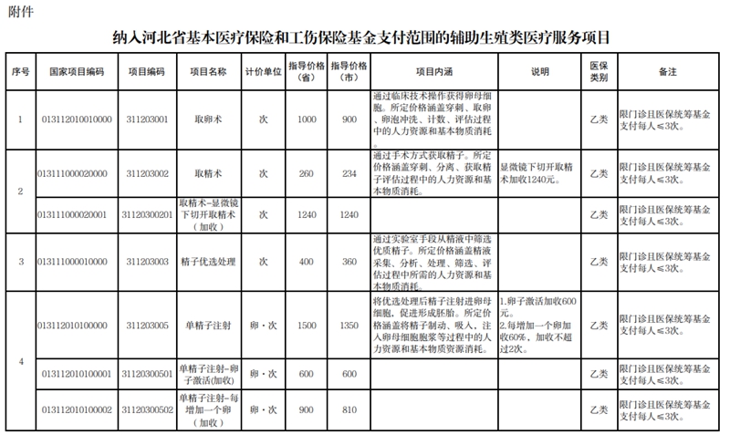 附件:纳入河北省基本医疗保险和工伤保险基金支付范围的辅助生殖类医疗服务项目