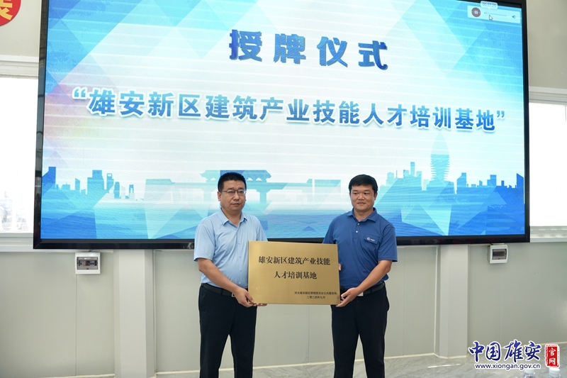 雄安新区公共服务局相关负责同志为新区参建企业授牌。中国雄安官网赵伟彤 摄