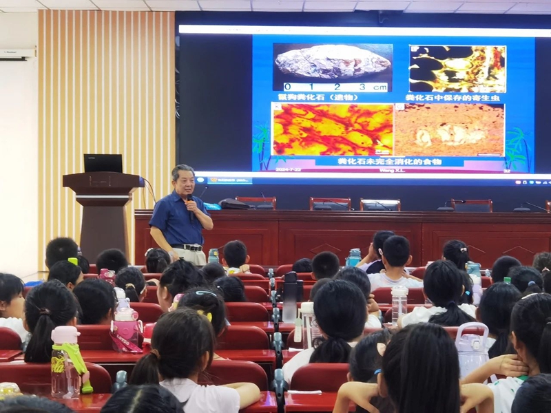 7月16日,中国地质大学(北京)教授、中国古生物学会常务理事王训练走进雄县第三小学,为孩子们带来科普讲座。