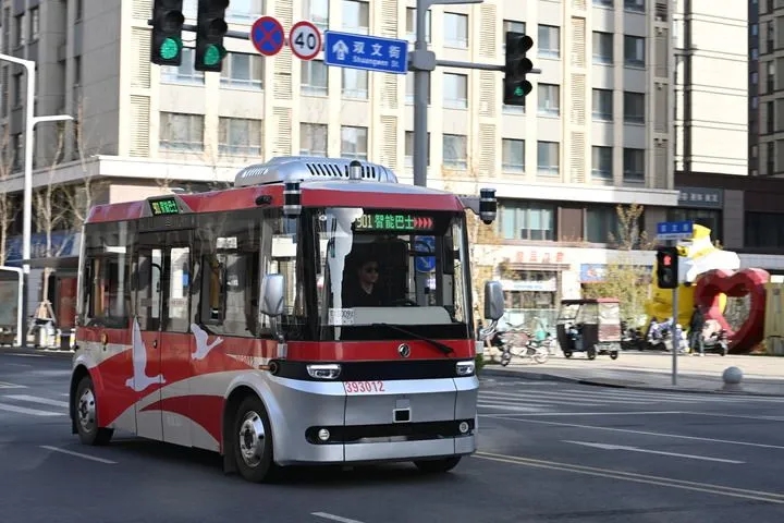 3月29日,无人驾驶智能网联巴士在雄安新区容东片区道路上行驶。新华社记者牟宇 摄
