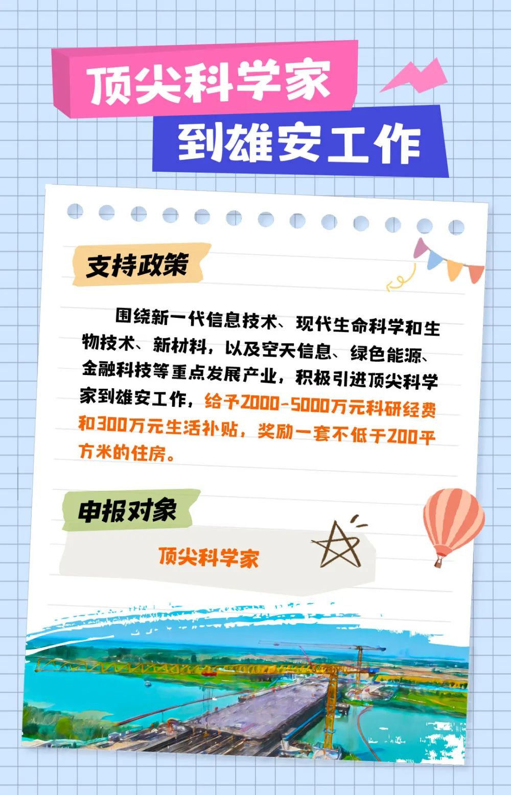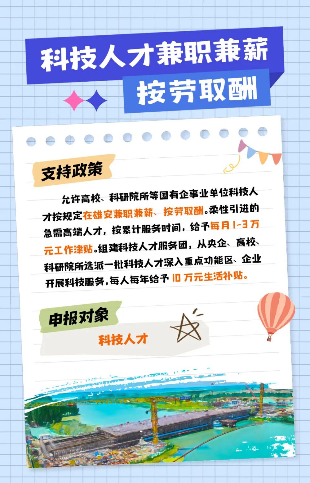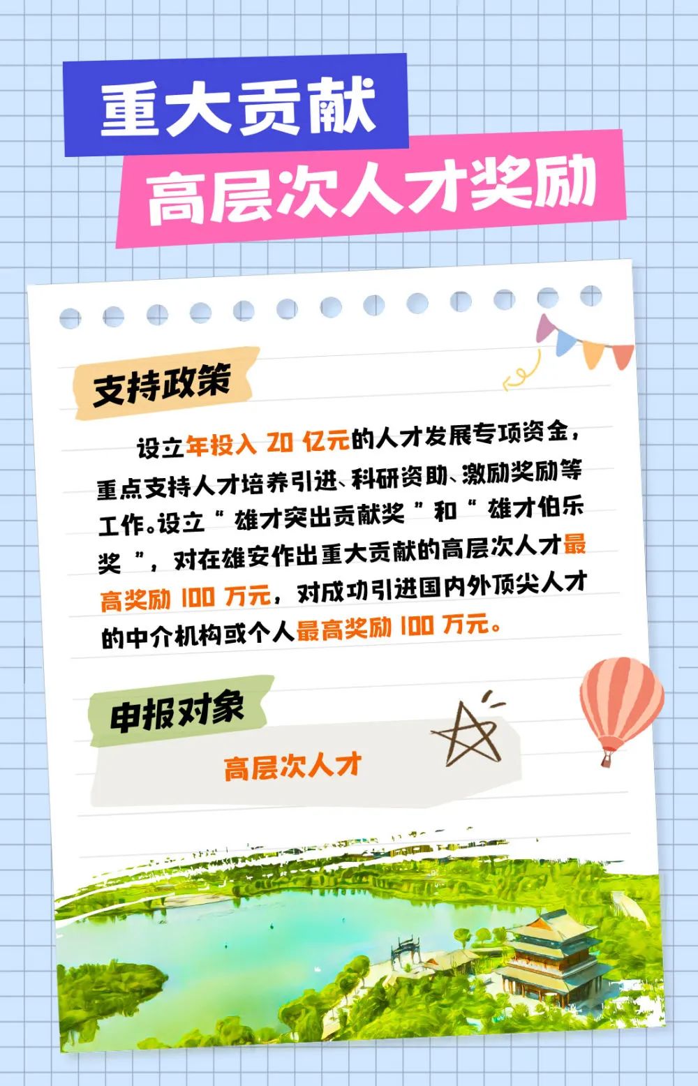 为聚集天下英才办好千年大计、国家大事,打造新时代创新高地和创业热土,雄安新区创新机制出台一系列政策措施,吸引五湖四海的科技人才和科创企业,为建设“妙不可言 心向往之”的未来之城提供坚强人才智力支撑。通过一组创意海报,让我们一起来看看,雄安新区如何用真金白银支持创业创新。