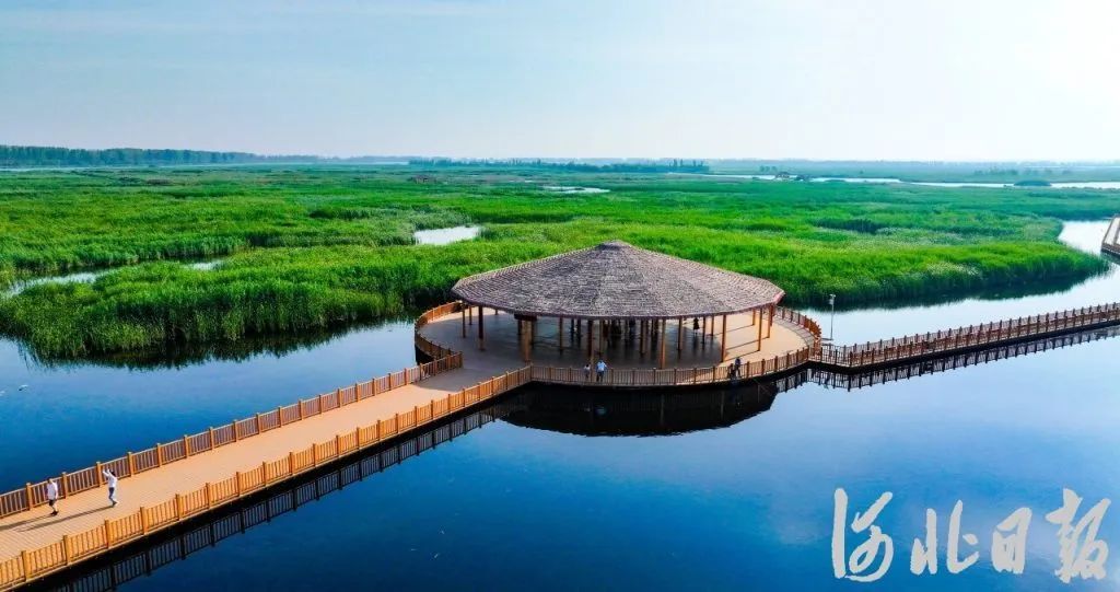 站在安新县白洋淀旅游码头,一眼望去,水面宽阔、碧波荡漾,不时有鸟儿飞过,一幅人与自然和谐共生的美好图景。