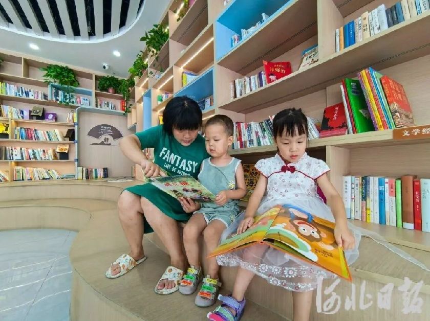 7月27日上午,南文营社区党群服务中心里,一位妈妈带着孩子在图书角读书。河北日报记者田明 摄