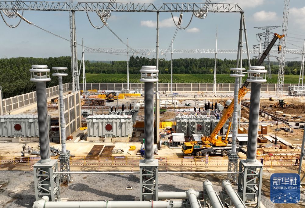 近日,位于河北省定兴县境内的雄安(北京西)1000千伏特高压变电站扩容工程建设,正在按照节点要求稳步推进。工程竣工投产后将有效提升送电能力、保障京津冀地区负荷发展需要,助推经济发展。(新华社记者 杨世尧 摄影报道)