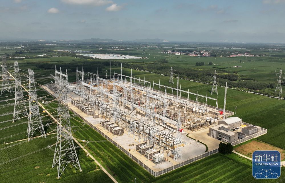 8月5日拍摄的雄安(北京西)1000千伏特高压变电站扩容工程建设工地(无人机照片)。