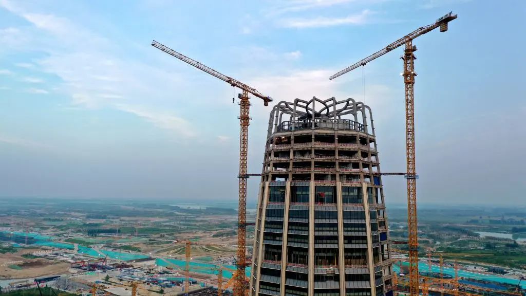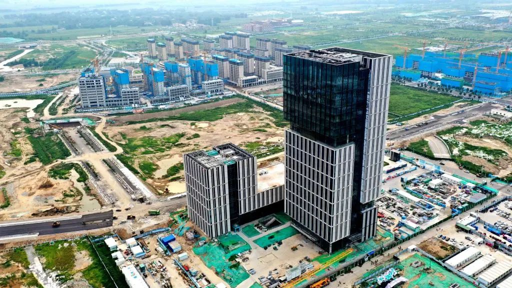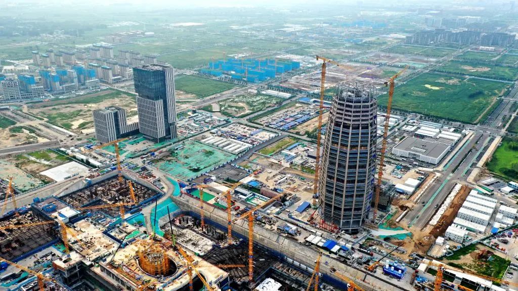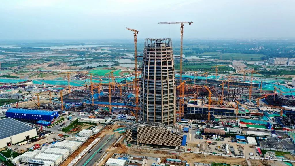 这是位于雄安新区启动区内的中国中化总部大楼建设现场(8月8日摄,无人机照片)。新华社记者 王晓 摄