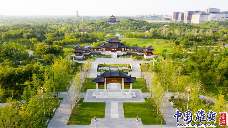 悦容公园内,亭台楼阁,充满无尽意趣。中国雄安官网李鑫 摄