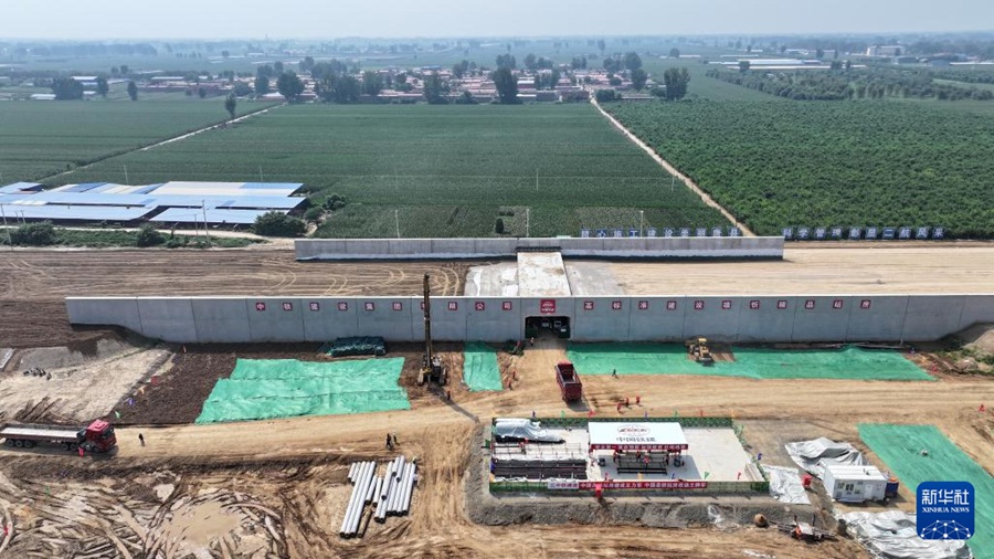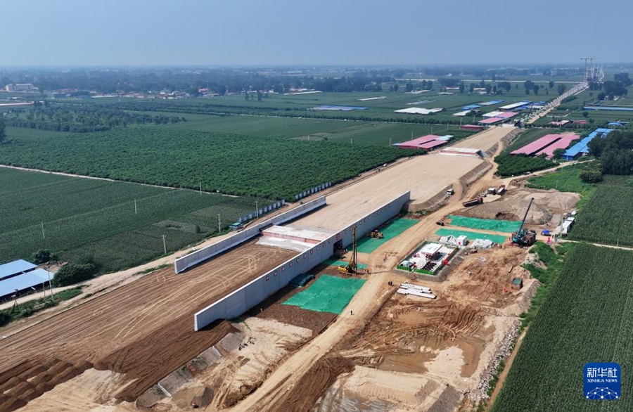 雄忻高铁唐县站建设现场(8月23日摄,无人机照片)。新华社记者牟宇 摄
