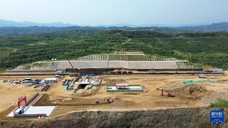 雄忻高铁阜平站建设现场(8月23日摄,无人机照片)。新华社发(曹龚摄)