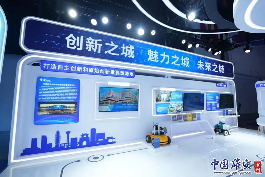在打造自主创新和原始创新重要策源地部分,通过多种展示形式,全面介绍雄安新区的科技产业平台、创新企业、产业人才政策支持以及创新氛围。
