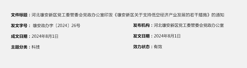 河北雄安新区党工委管委会党政办公室印发《关于支持低空经济产业发展的若干措施》的通知